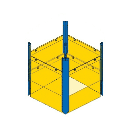 Door de combinatie met enkelgeleide hoekbalken is dit systeem ook als 3-zijdig of 4-zijdig gesloten putten te leveren.